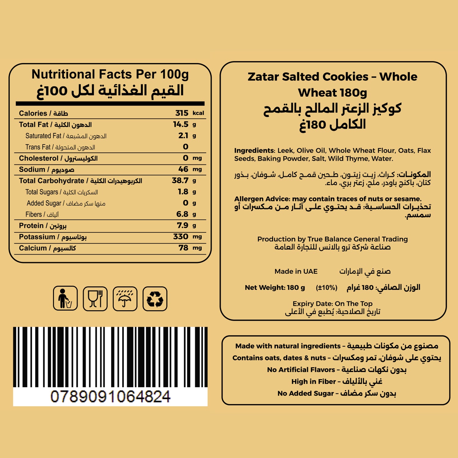 Norielle Za’atar Salted Whole Wheat Cookies – Sugar-Free | 180g